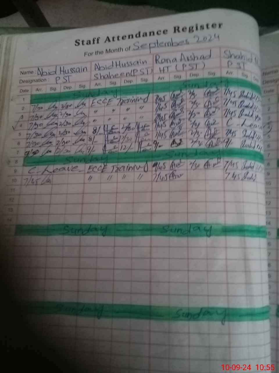 | CNIC | Full Name | Designation | R/C | Absence During Last Calender Month |
