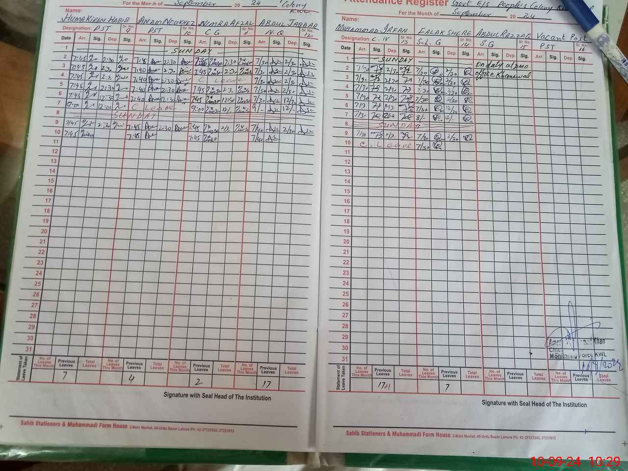| Remarks (Use Separate Page if Required): PST Muhammad Younas retired on 31 July 2024 Please update teacher attendance list on MEA tab | |||||