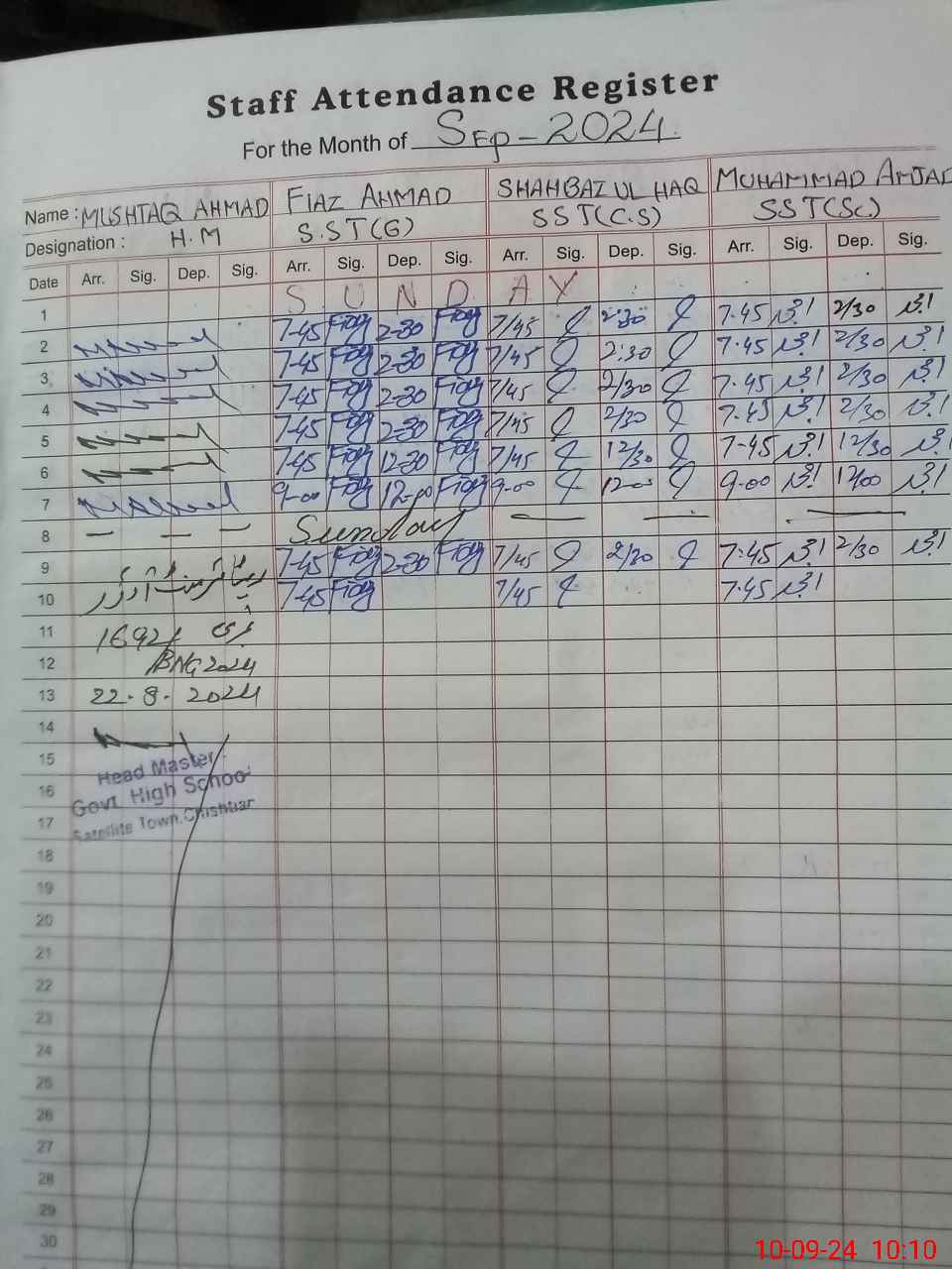 | EMIS Code: 31120159 | Name of School: GHS SATLITE TOWN CHISHTIAN | |||
