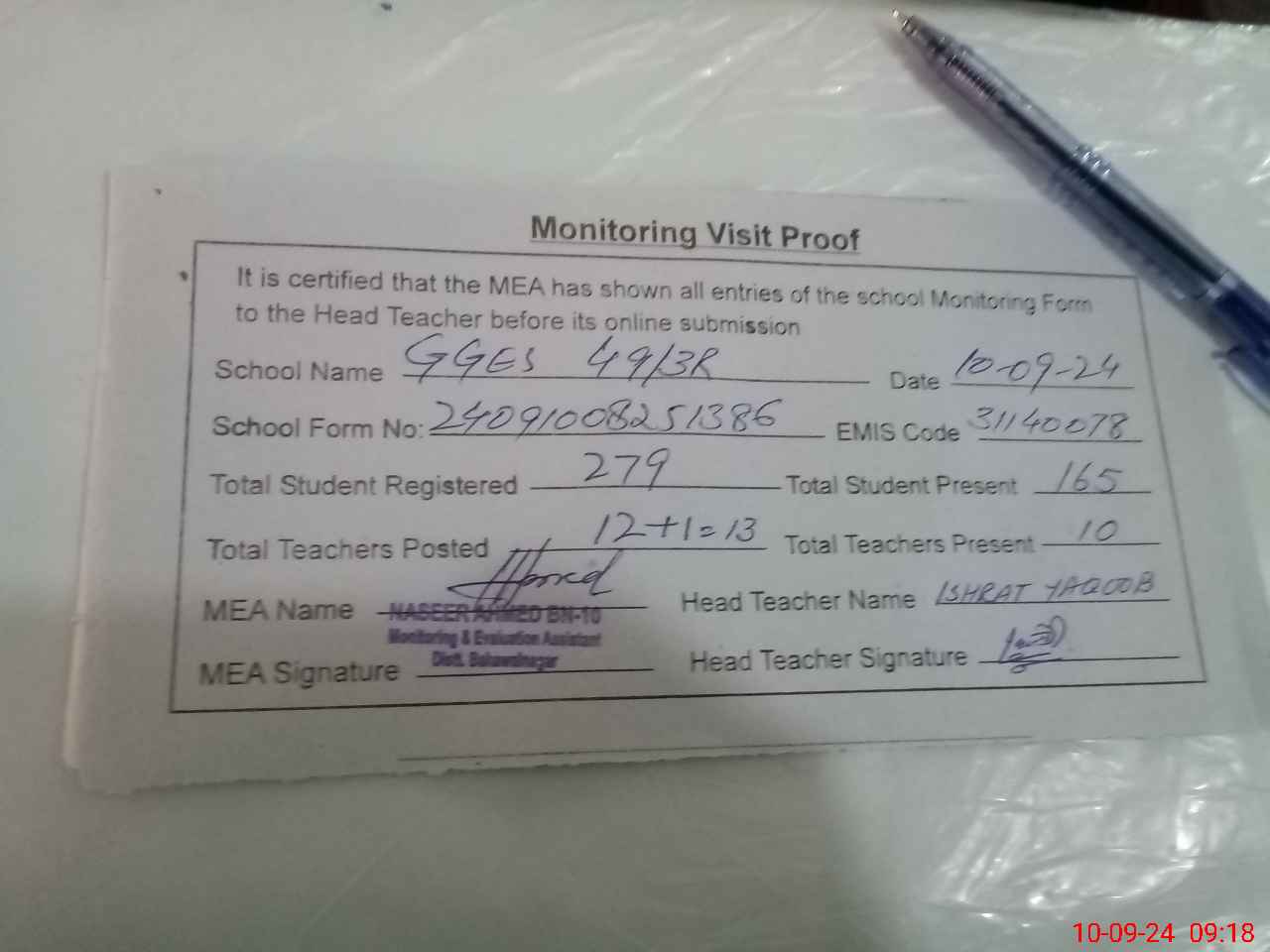 | EMIS Code: 31140078 | Name of School: GGES CHAK NO. 49/3-R | |||