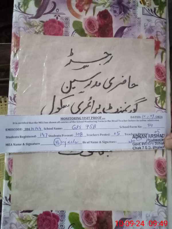 | EMIS Code: 38410144 | Name of School: GPS CHAK NO.7 SB | |||