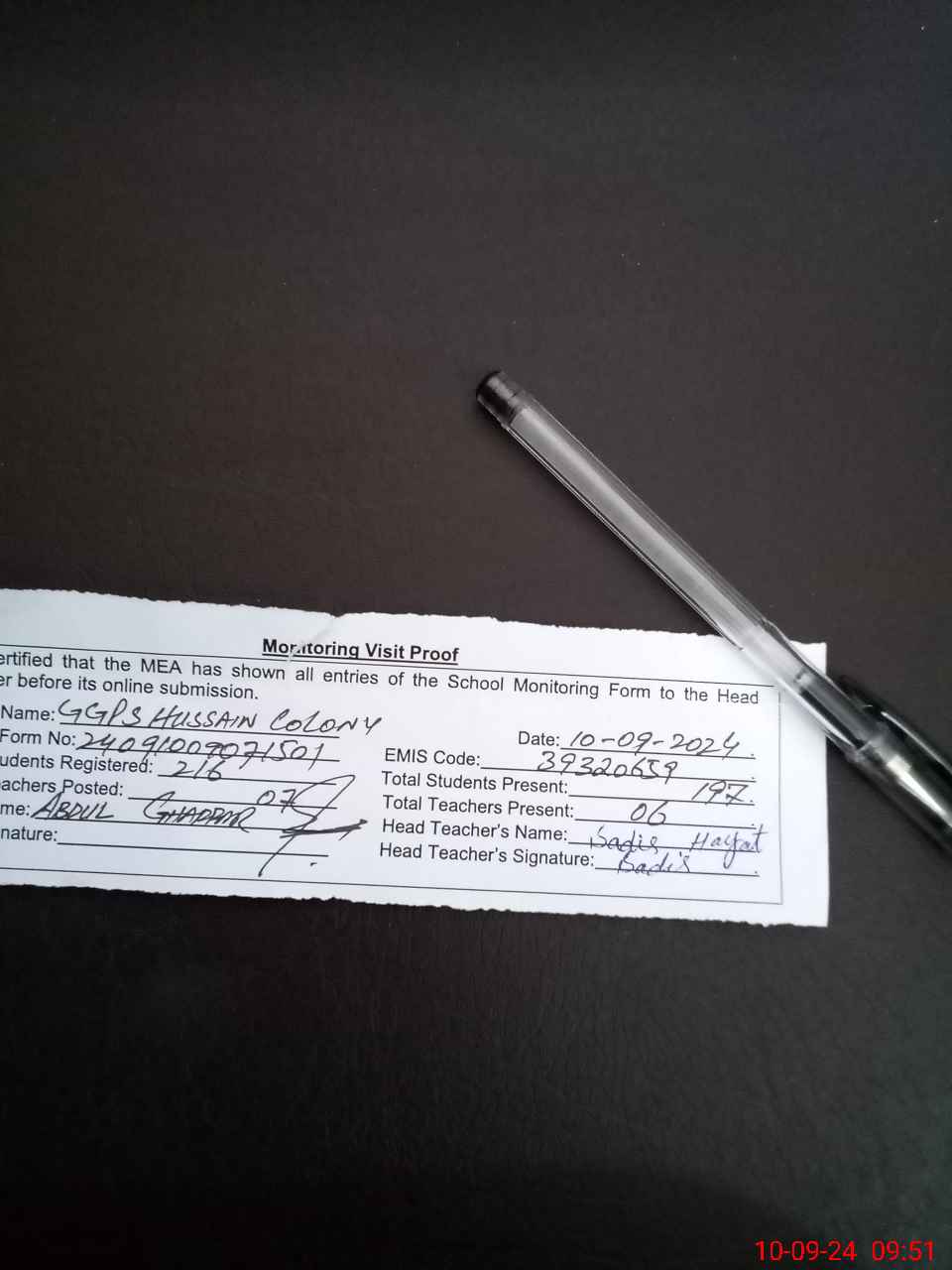 | EMIS Code: 39320659 | Name of School: GGPS HUSSAIN COLONY | |||
