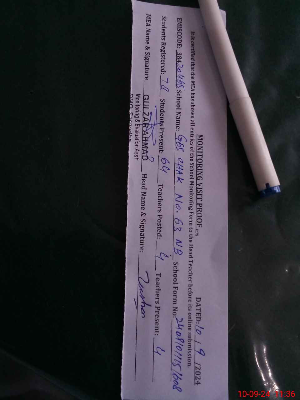 | EMIS Code: 38420465 | Name of School: GES CHAK NO.63 NB | |||