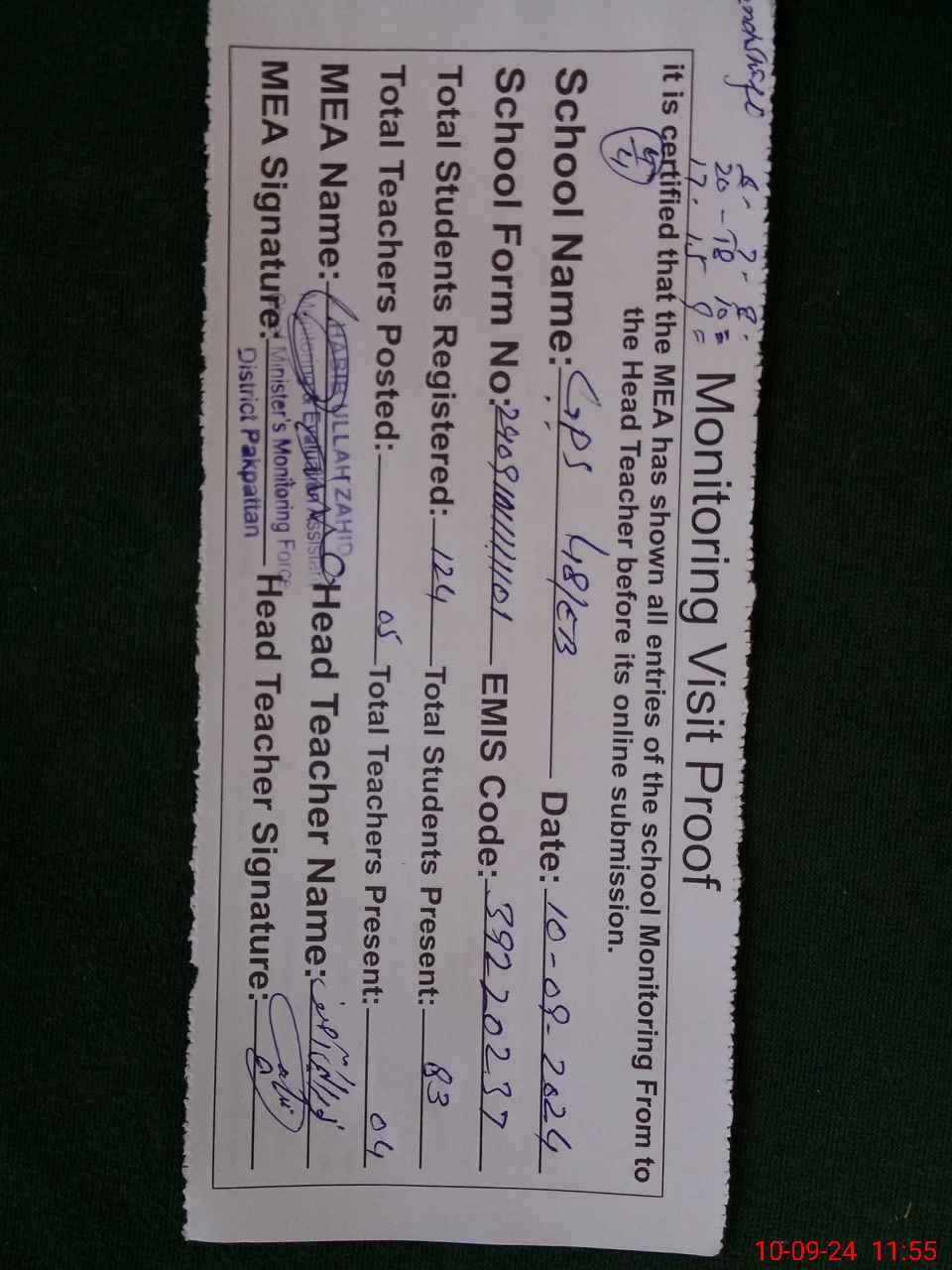 | EMIS Code: 39220237 | Name of School: GPS 48 EB P.O 50 EB ARIF WALA | |||