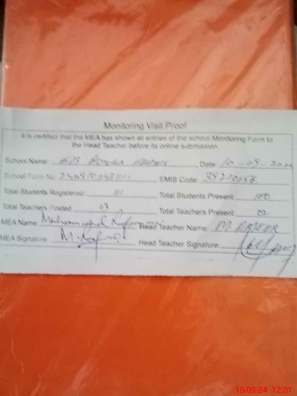 | Certified that this School was Inspected by the Undersigned MEA/DMO Today and the Information Stated Above is as Per Record. | |||||