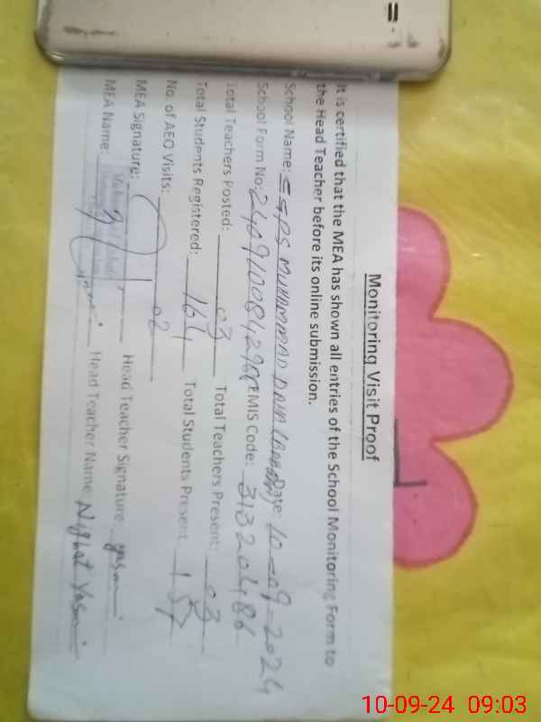 | Certified that this School was Inspected by the Undersigned MEA/DMO Today and the Information Stated Above is as Per Record. | |||||