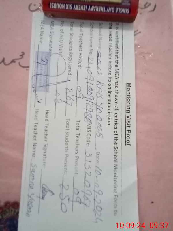 | Attendance Register | Head Teacher | MEA with School | Visit Proof |