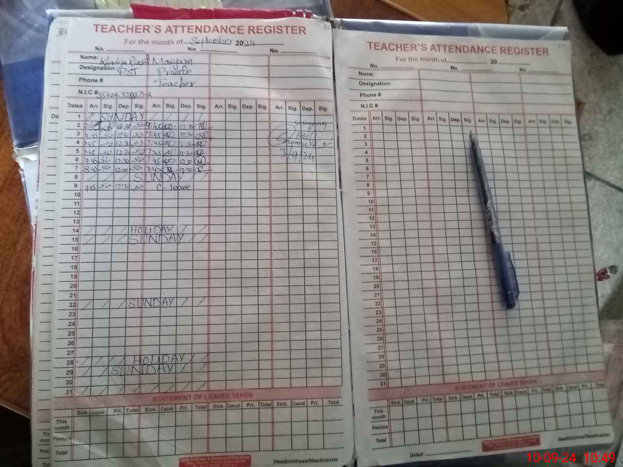 | Name: Kh**** Ri**** Aw**** Designation: (School Headmaster's/Headmistress's) PST Phone/Cell Number: 03**** |