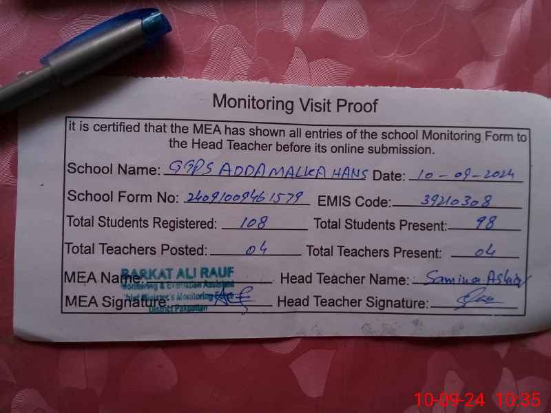 | EMIS Code: 39210308 | Name of School: GGPS ADDA MALKA HANS | |||