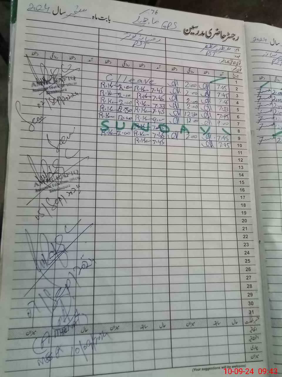 | CNIC | Full Name | Designation | R/C | Absence During Last Calender Month |