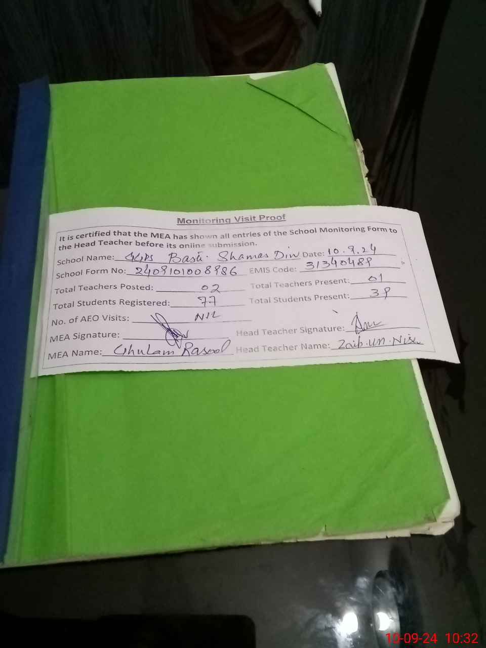 | EMIS Code: 31340489 | Name of School: GGPS BASTI SHAMAS DIN | |||