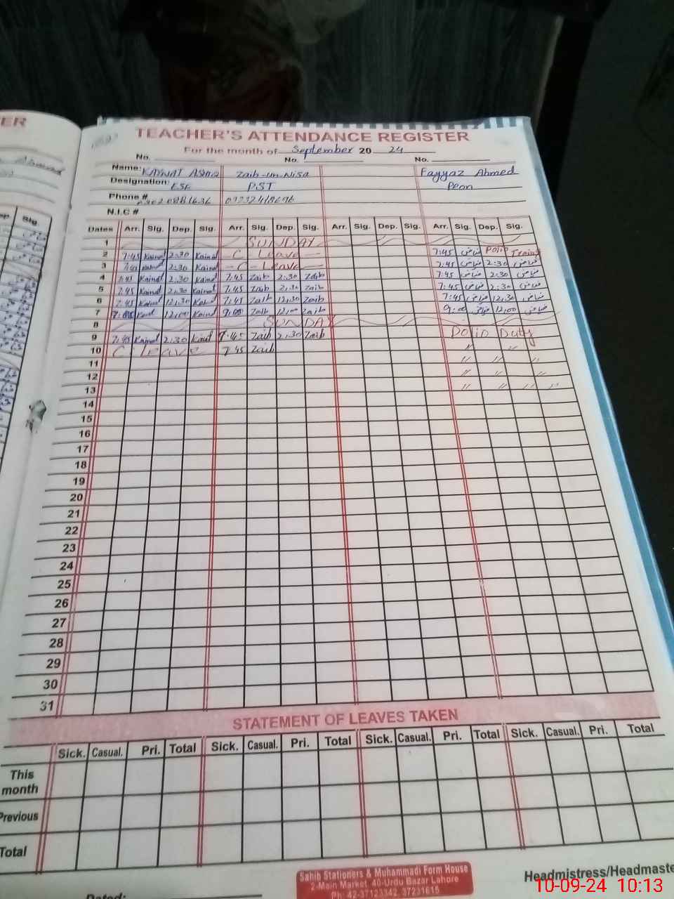 | Name: KA**** AS**** Designation: (School Headmaster's/Headmistress's) PST Phone/Cell Number: 03**** |
