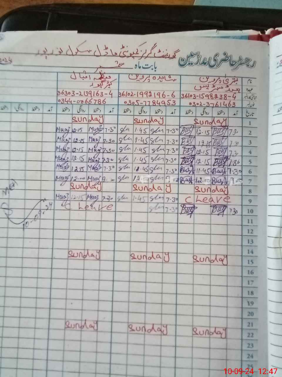 | Name: BU**** PA**** Designation: (School Headmaster's/Headmistress's) S.S.T.(arts) Phone/Cell Number: 03**** |