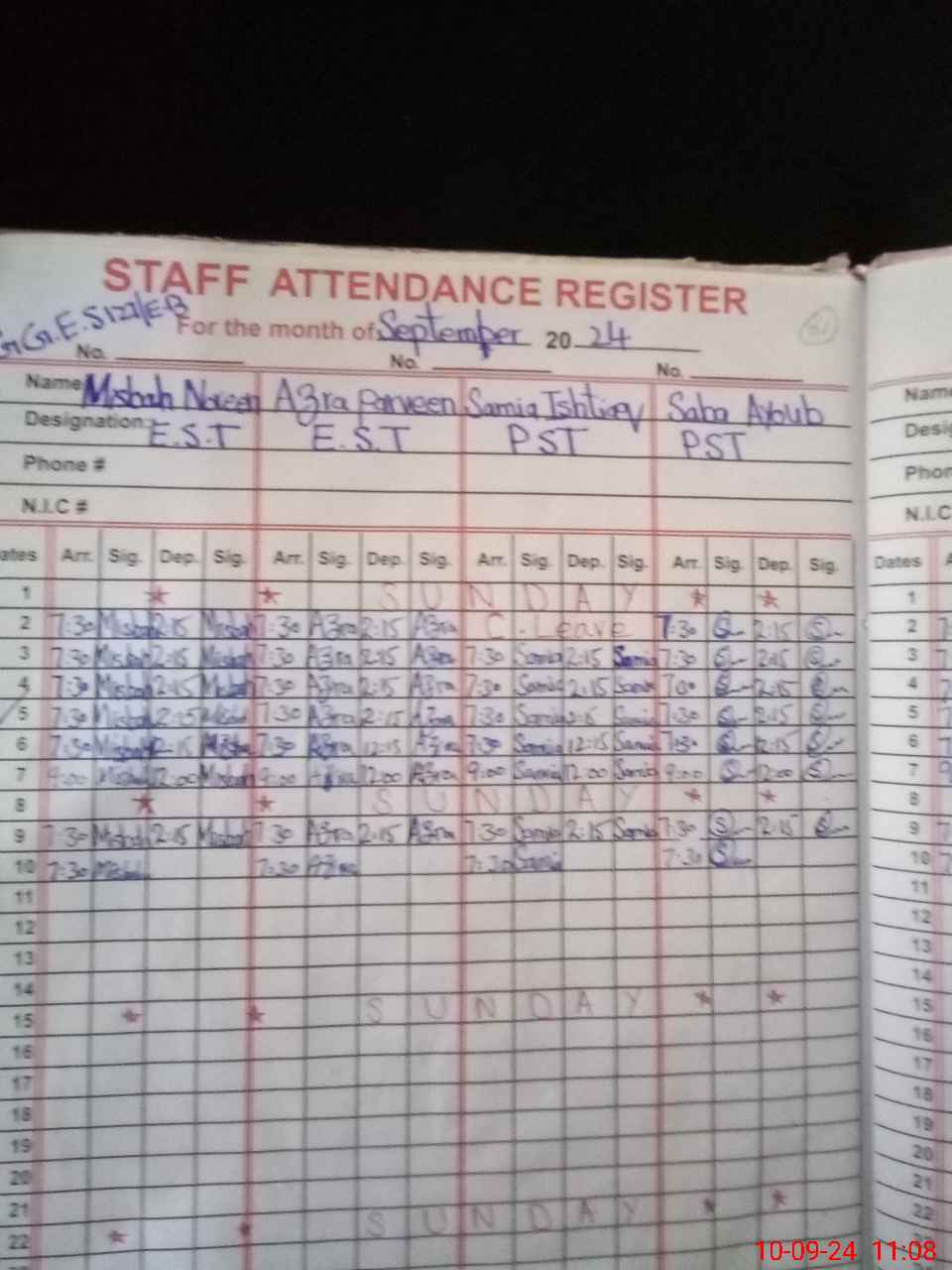 | CNIC | Full Name | Designation | R/C | Absence During Last Calender Month |