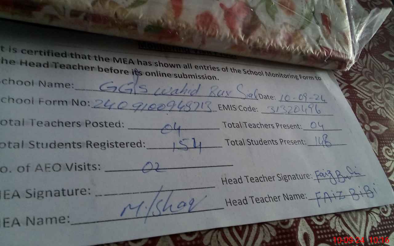 | EMIS Code: 31320496 | Name of School: GGPS WAAHID BUX SIAL | |||