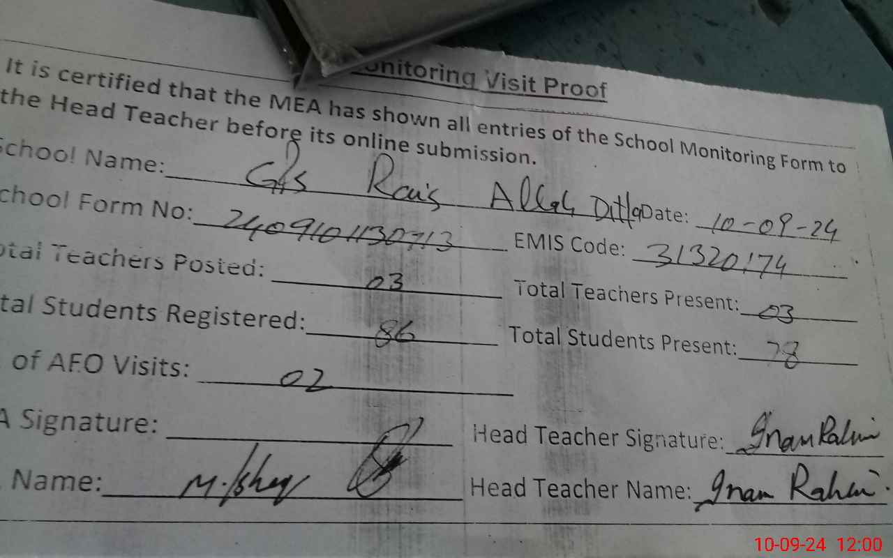 | EMIS Code: 31320174 | Name of School: GPS RAIS ALLAH DITTA | |||