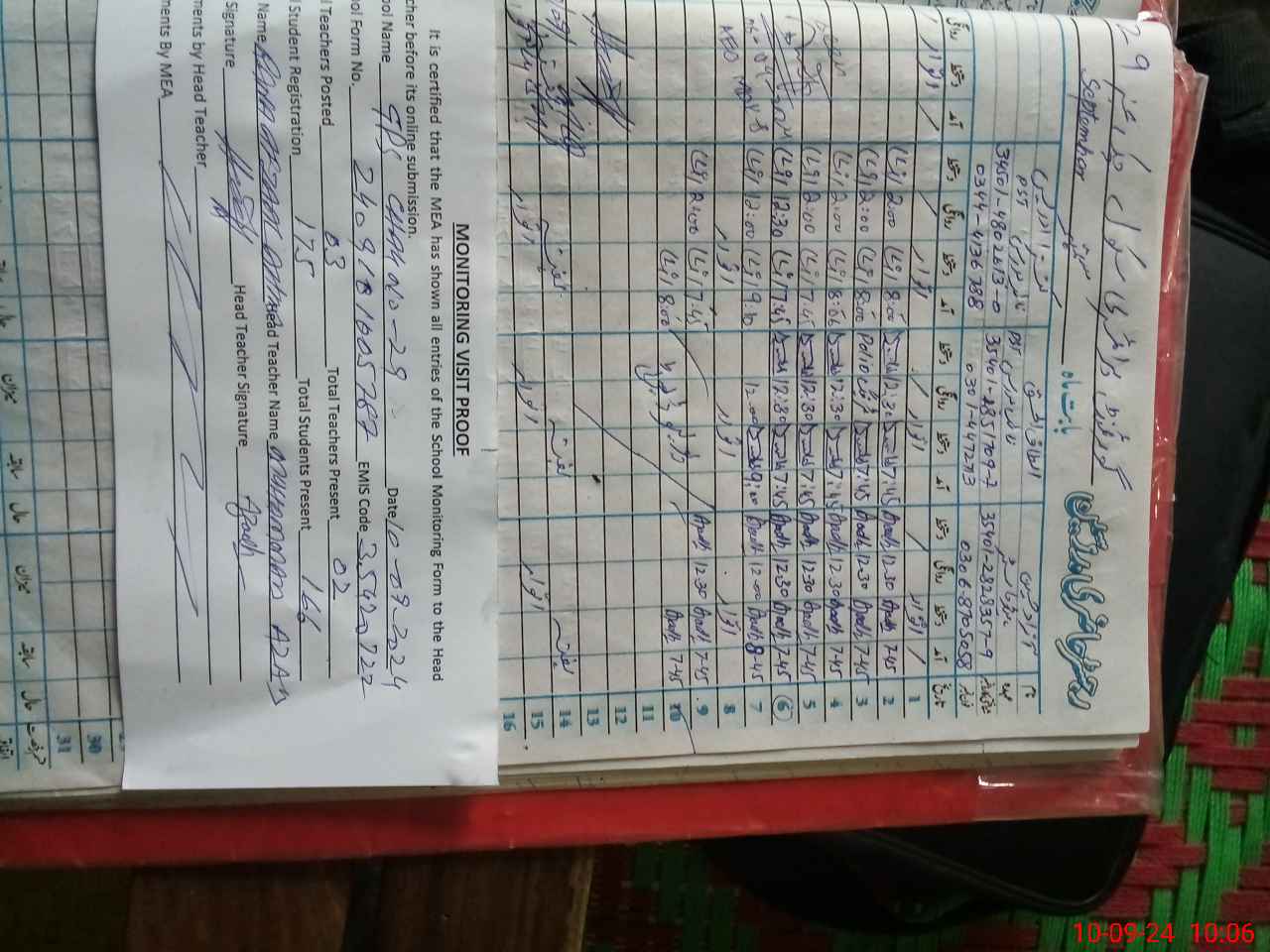 | Monitoring Date: 10-09-2024 | Start Time: 10-09-2024 09:44 AM | End Time: 10-09-2024 10:07 AM | Name of MEA: Ra**** Af**** Ah**** (R**** 25**** | |