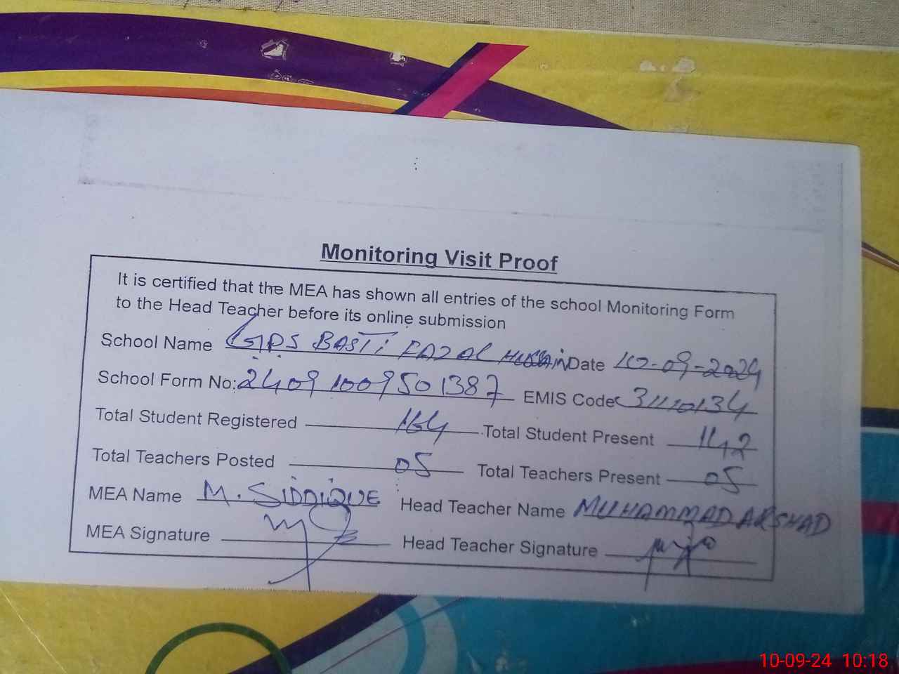 | EMIS Code: 31110134 | Name of School: GPS BASTI FAZAL HUSAIN | |||