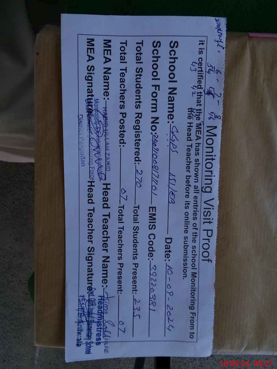| EMIS Code: 39220381 | Name of School: GGPS 151 EB PO DILLOW WALA ARIFWALA | |||