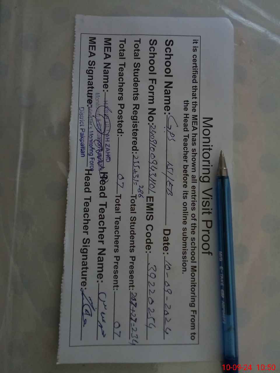 | Certified that this School was Inspected by the Undersigned MEA/DMO Today and the Information Stated Above is as Per Record. | |||||