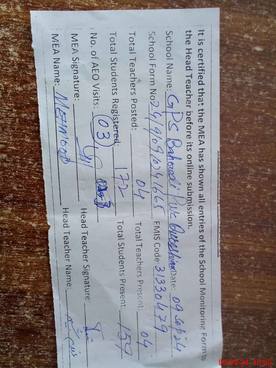 | EMIS Code: 31330479 | Name of School: GPS BAHAUDI PUR QURESHIAN | |||