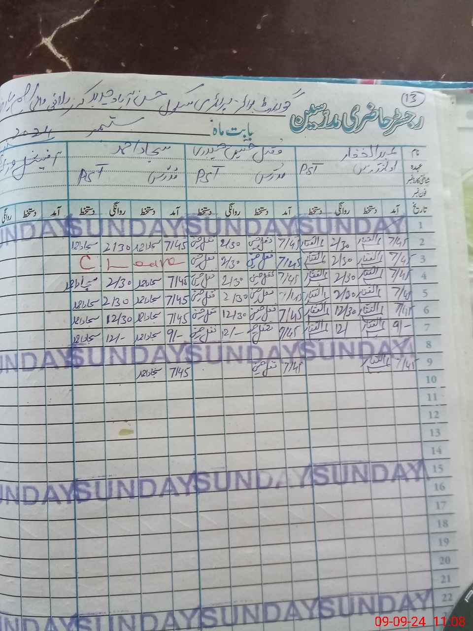 | CNIC | Full Name | Designation | R/C | Absence During Last Calender Month |
