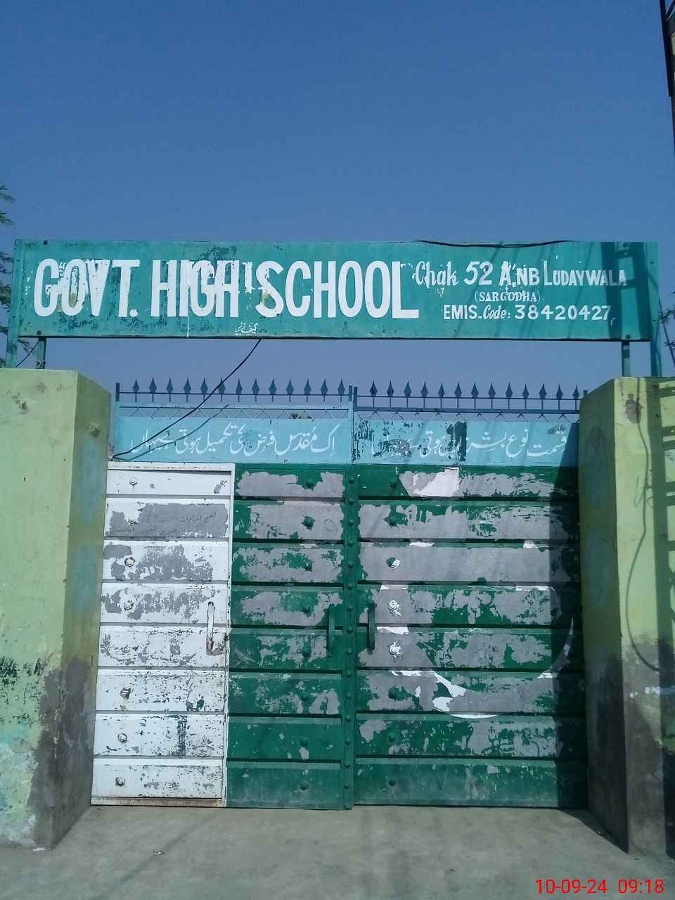 | EMIS Code: 38420427 | Name of School: GHS CHAK NO.52 ANB | |||
