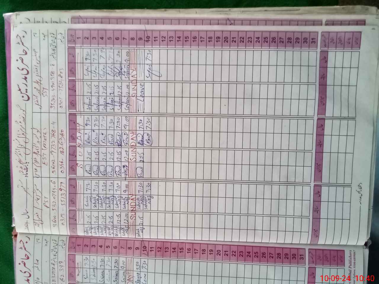 | Leave | Duty | Absent | Maternity | Medical | Ex- Pak |