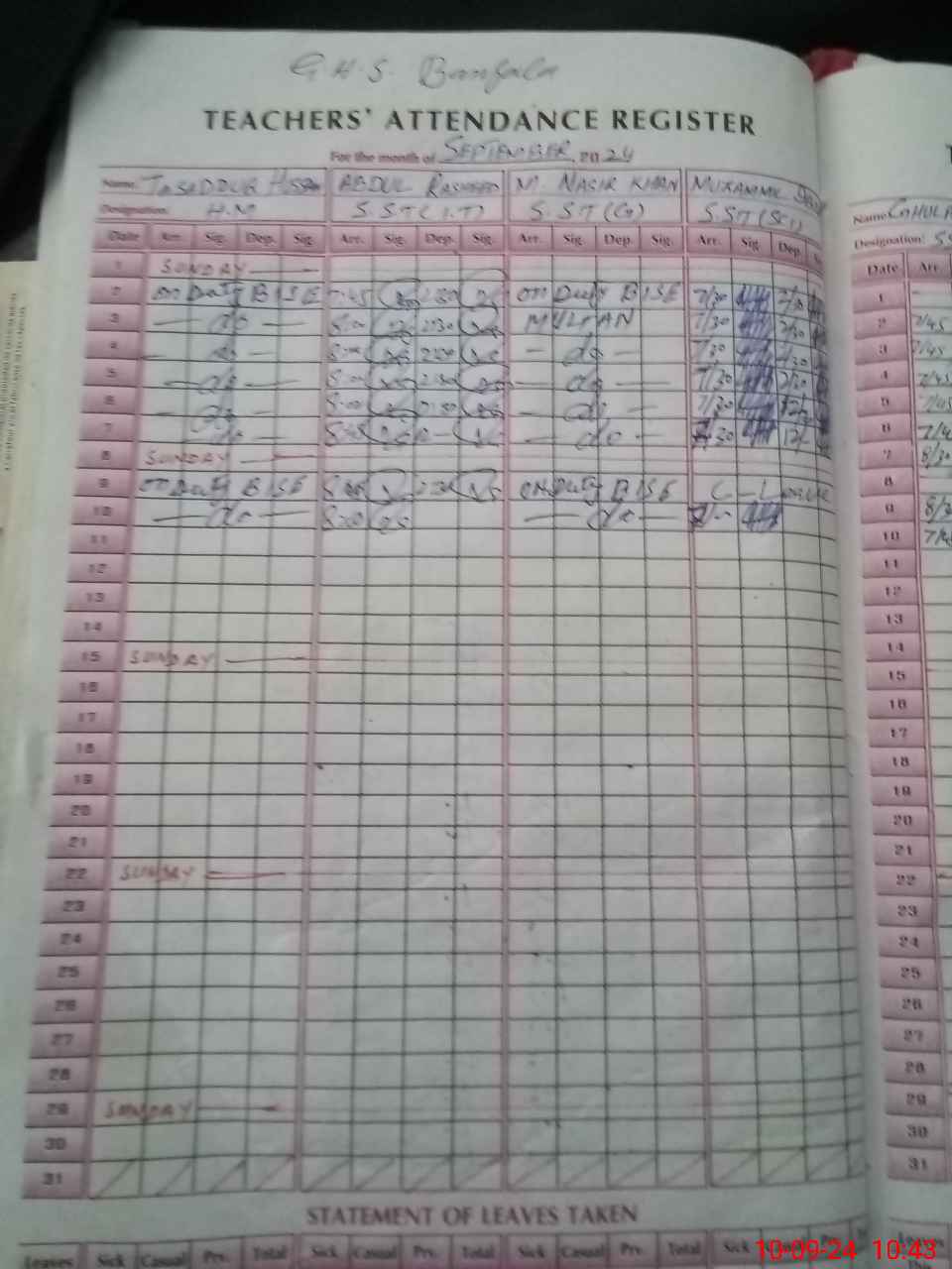 | 36**** | Mu**** Na**** Kh**** | 1 | 0 | 12 | 0 | 0 | 0 | 0 | 0 | 0 | 0 | Exam Duty | |