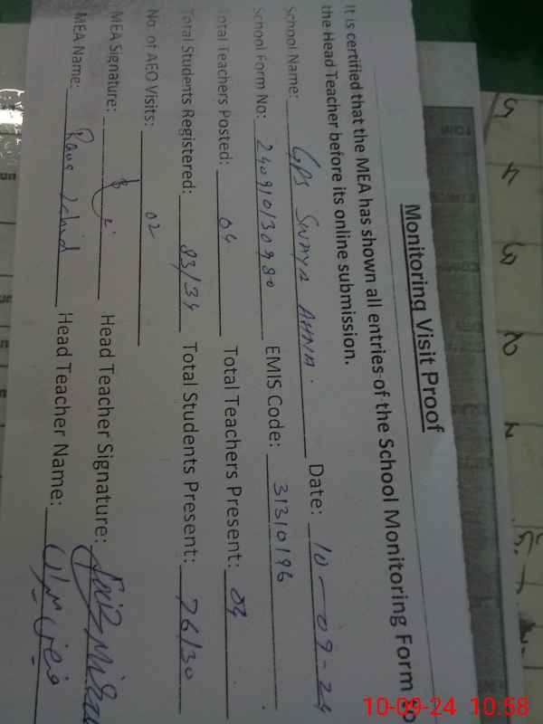 | Certified that this School was Inspected by the Undersigned MEA/DMO Today and the Information Stated Above is as Per Record. | |||||