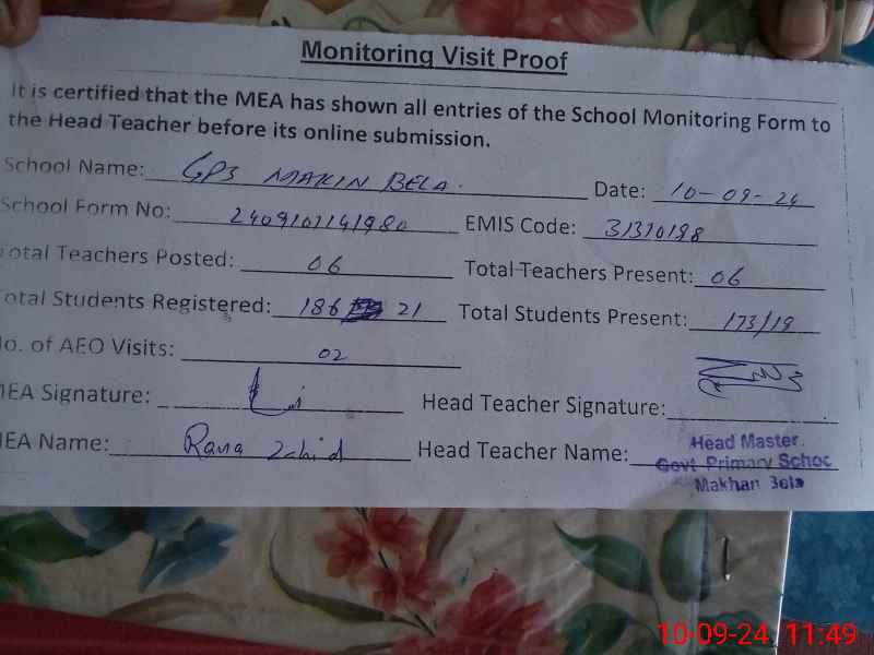 | EMIS Code: 31310198 | Name of School: GPS MAKHAN BELA (After Noon) | |||