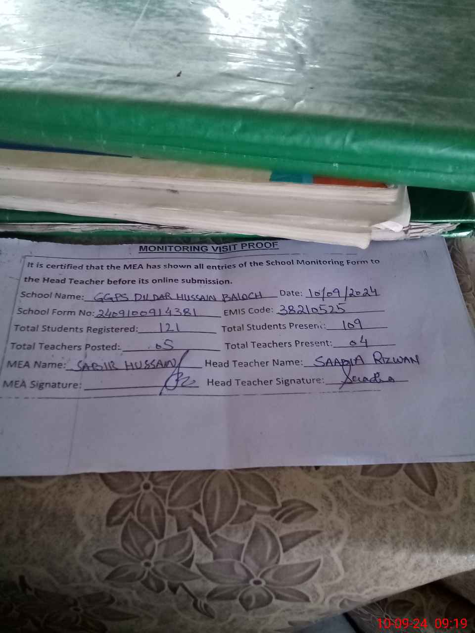 | EMIS Code: 38210525 | Name of School: GGPS DILDAR HUSSAIN BALOUCH | |||