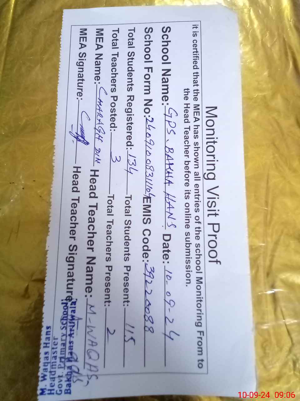 | EMIS Code: 39220088 | Name of School: GPS BAKHA HANS | |||