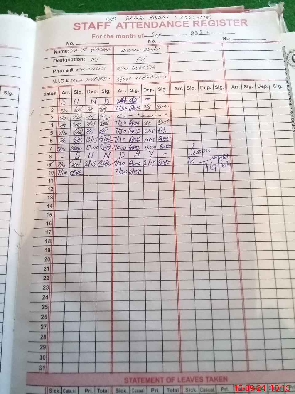 | Name: ZI**** URRE**** Designation: (School Headmaster's/Headmistress's) PST Phone/Cell Number: 03**** |