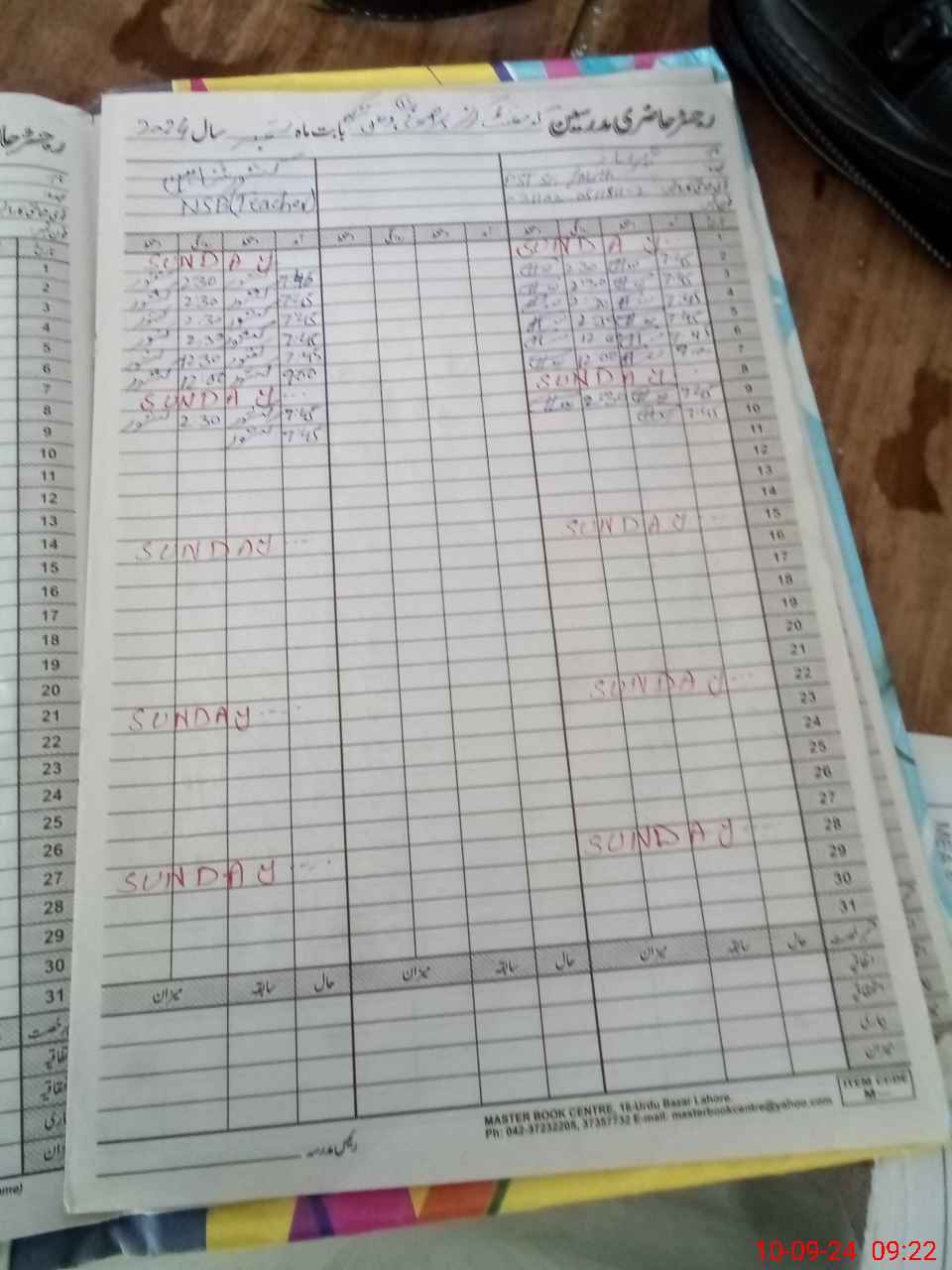 | CNIC | Full Name | Designation | R/C | Absence During Last Calender Month |