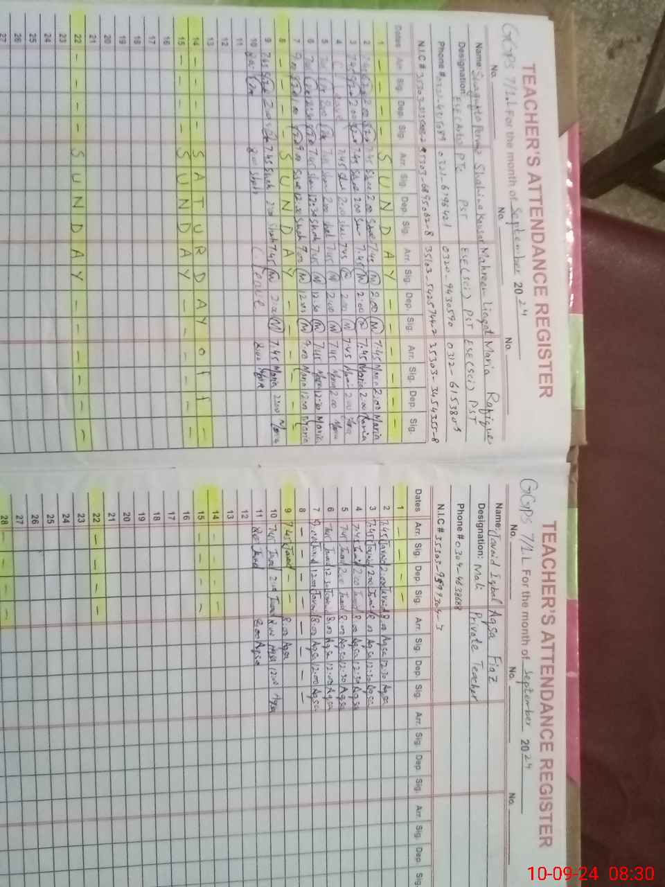 | CNIC | Full Name | Designation | R/C | Absence During Last Calender Month |