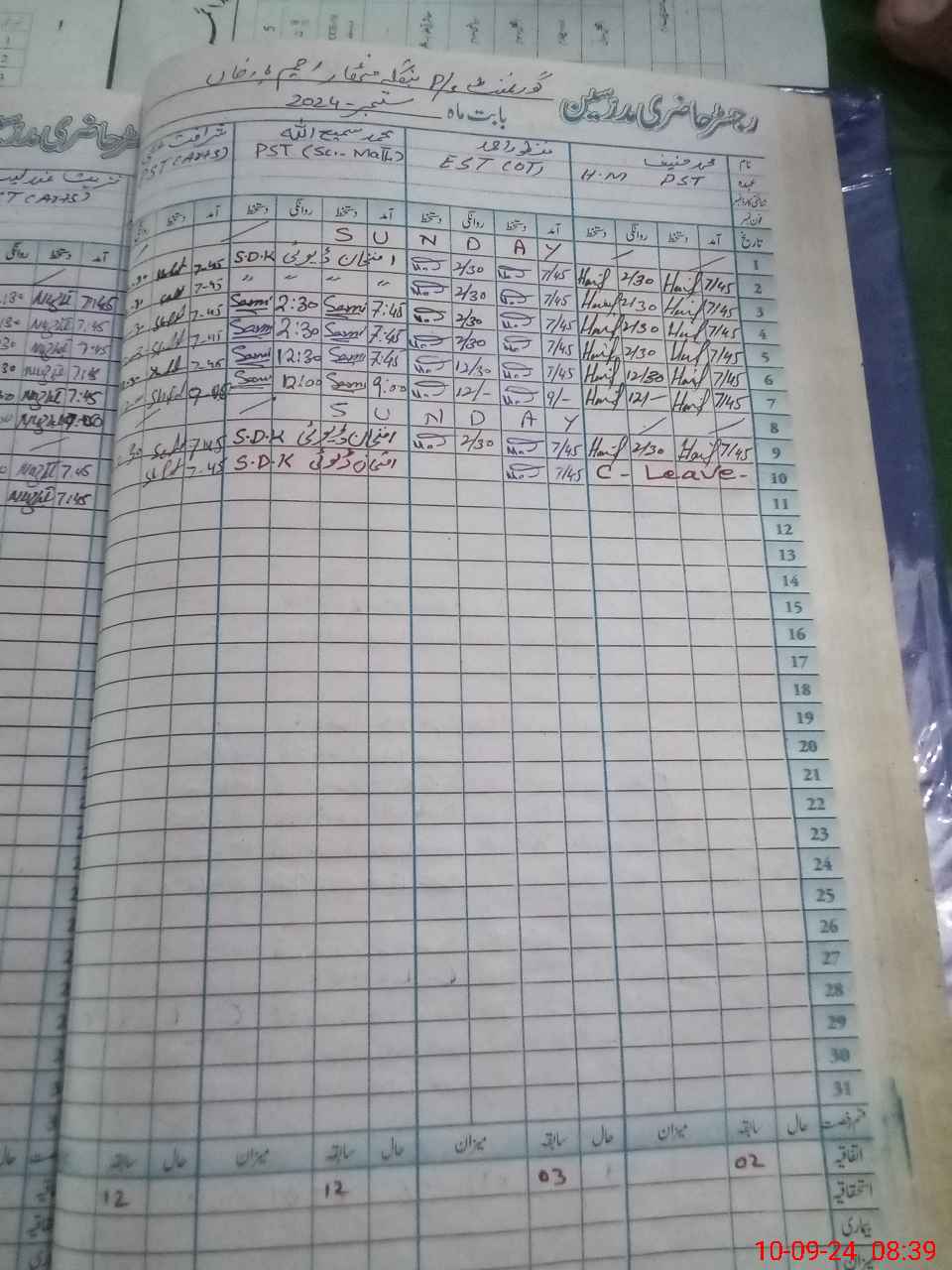| 31**** | Mu**** Ha**** | PST | Regular | 0 | 0 | 0 | 0 | 0 | 0 | 0 | 0 | 0 | Casual |
