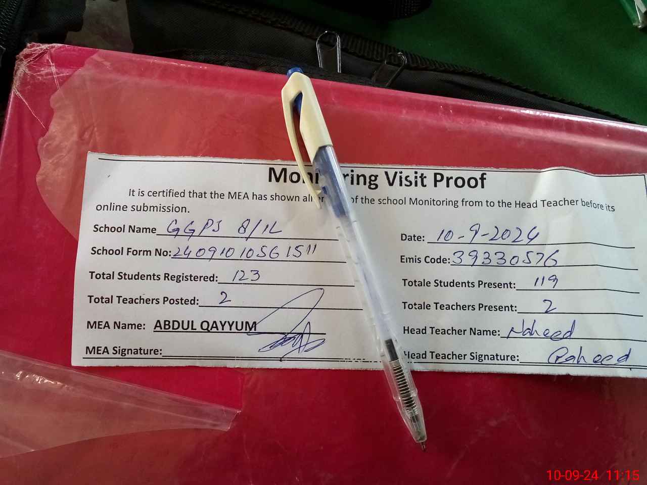 | Certified that this School was Inspected by the Undersigned MEA/DMO Today and the Information Stated Above is as Per Record. | |||||