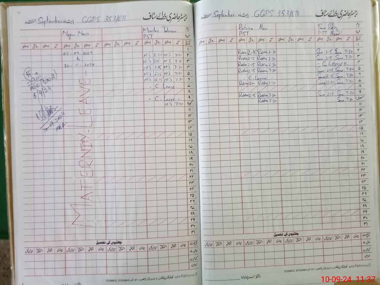 | Leave | Duty | Absent | Maternity | Medical | Ex- Pak |