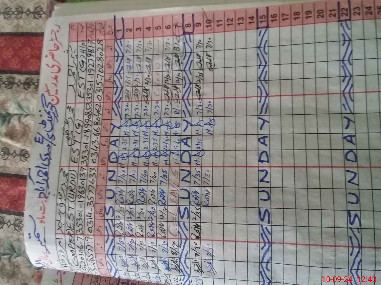 | CNIC | Full Name | Designation | R/C | Absence During Last Calender Month |