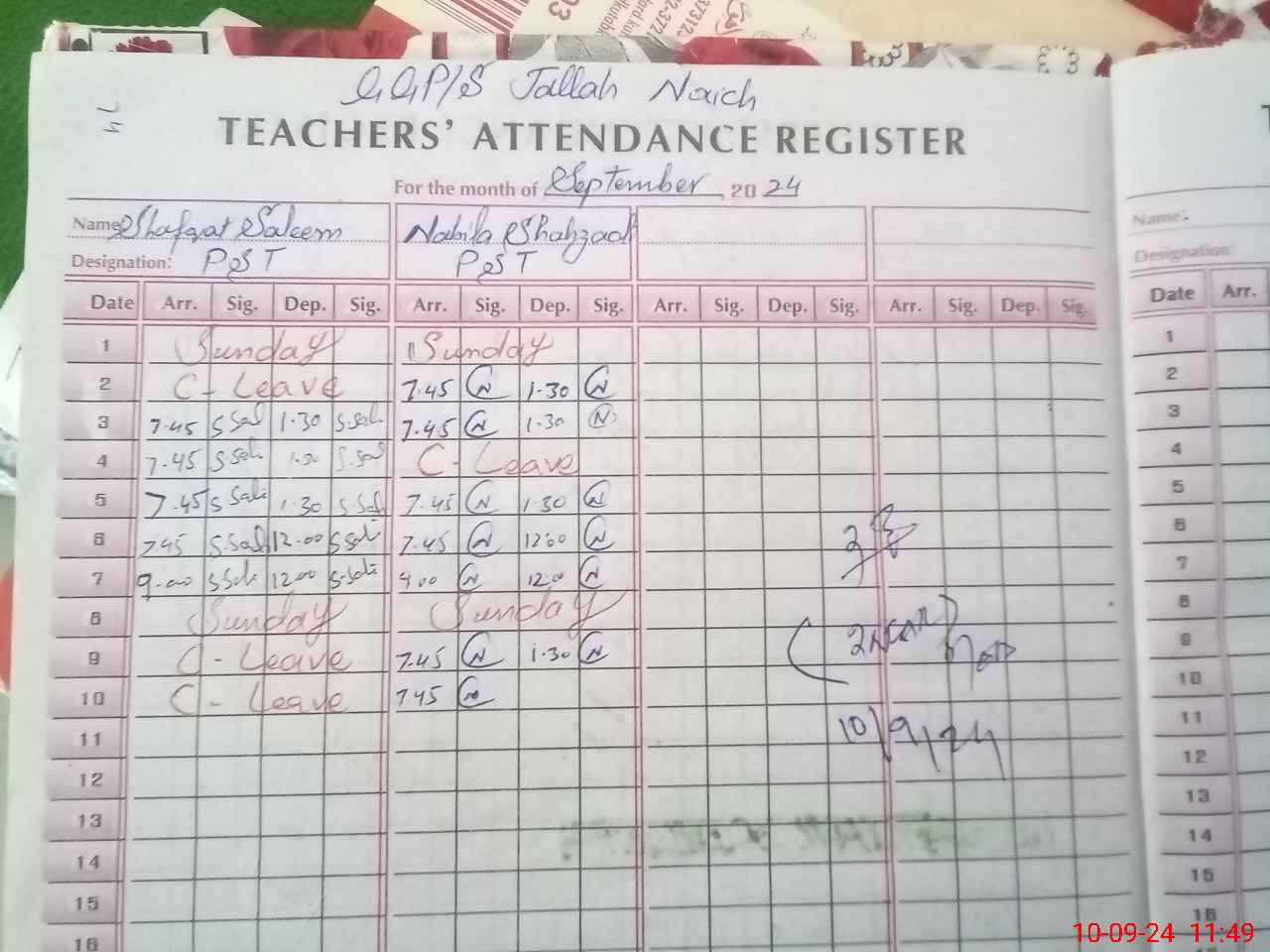 | Name: SH**** SA**** Designation: (School Headmaster's/Headmistress's) PST Phone/Cell Number: 03**** |