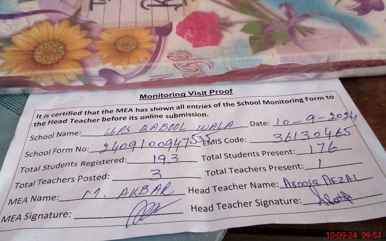 | EMIS Code: 36130465 | Name of School: GGPS QABOOL WALA MUZA LABER MULTAN | |||