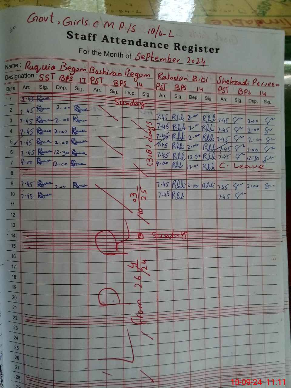 | Name: RU**** BE**** Designation: (School Headmaster's/Headmistress's) S.S.T.(Arts) Phone/Cell Number: 03**** |