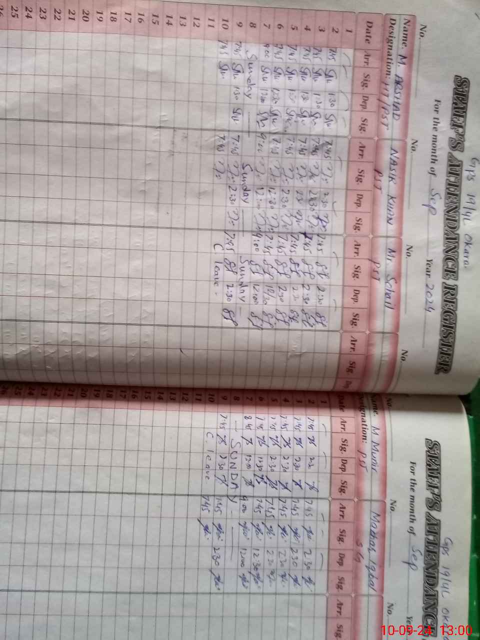 | CNIC | Full Name | Designation | R/C | Absence During Last Calender Month |