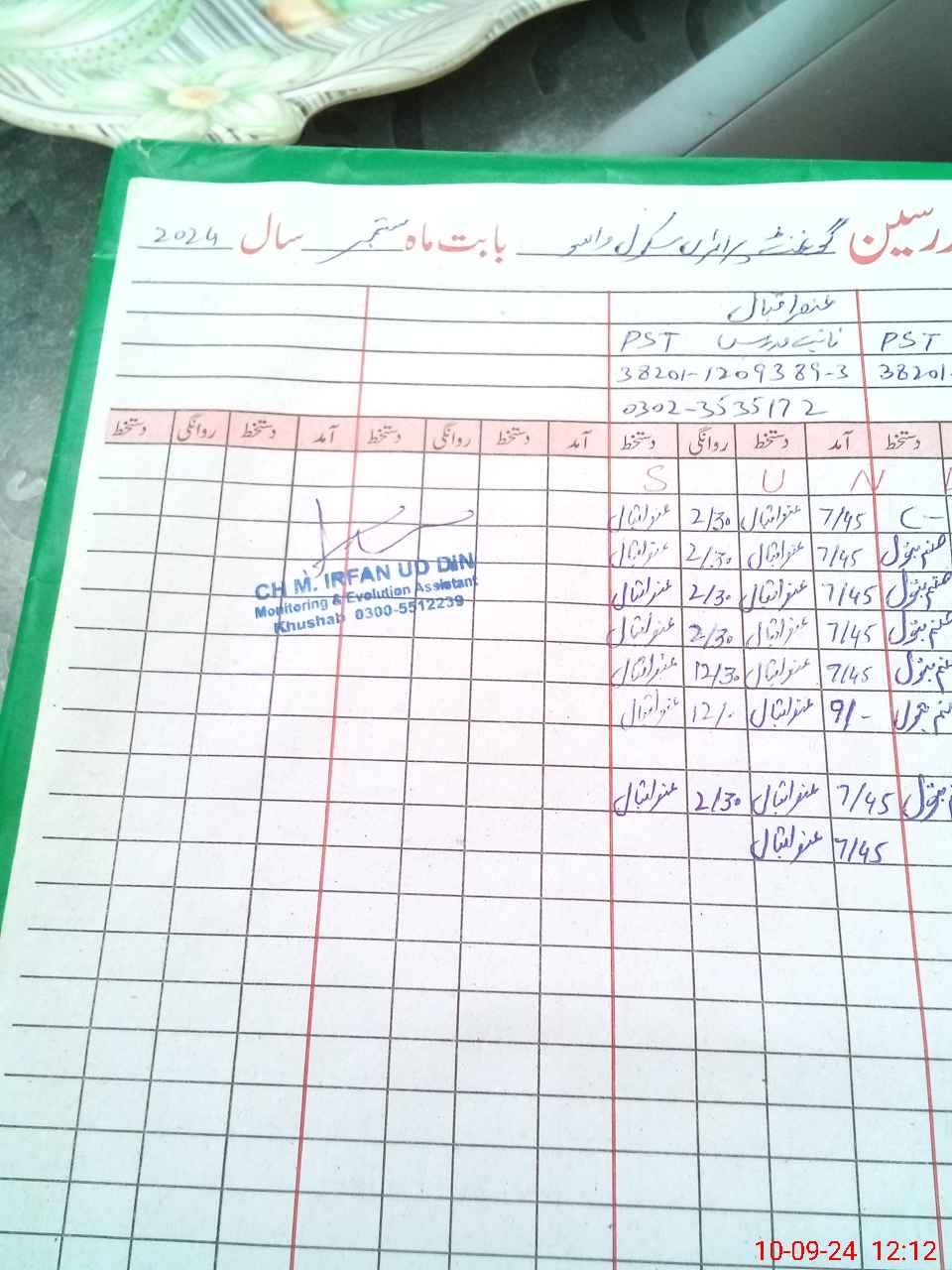 | Name: MId**** Designation: (School Headmaster's/Headmistress's) PST/PTC/JV Phone/Cell Number: 03**** |