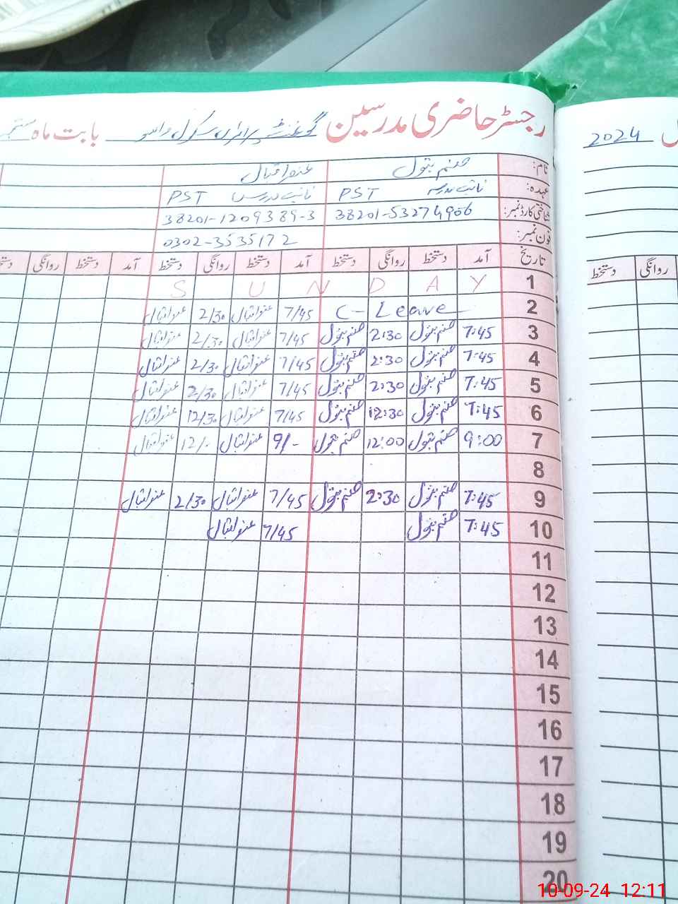 | CNIC | Full Name | Designation | R/C | Absence During Last Calender Month |