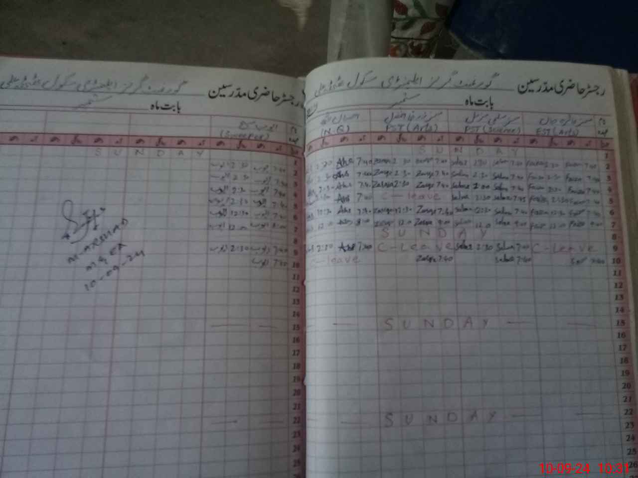 | Leave | Duty | Absent | Maternity | Medical | Ex- Pak |