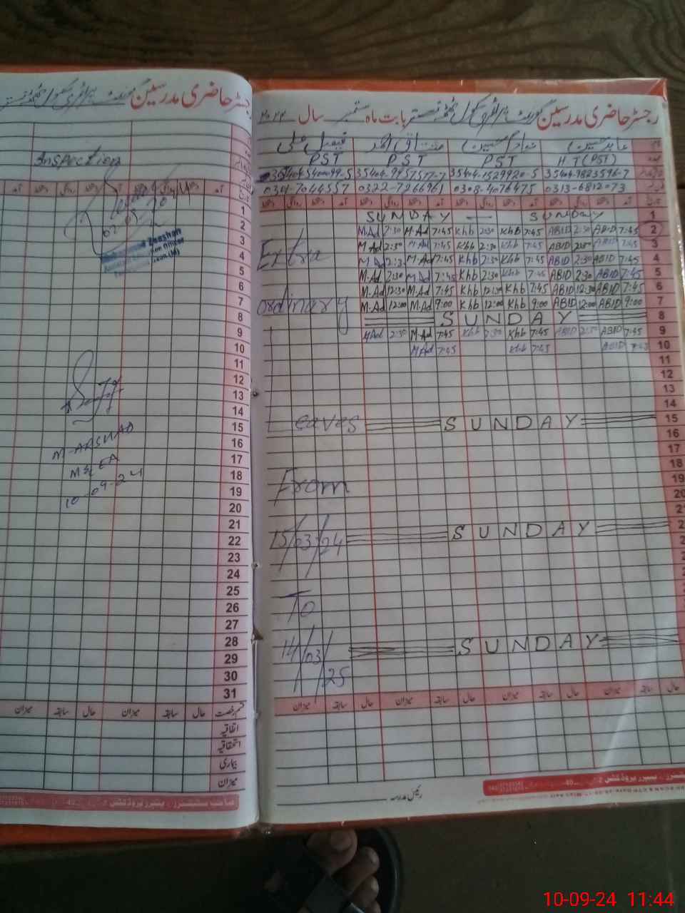 | Leave | Duty | Absent | Maternity | Medical | Ex- Pak |