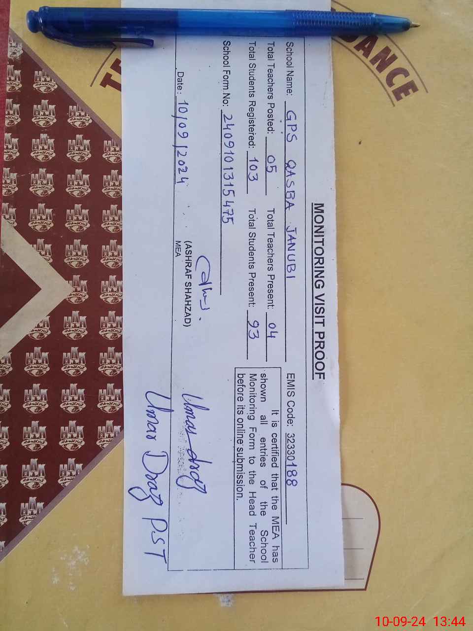 | EMIS Code: 32330188 | Name of School: GPS QASBA JUNOBI | |||