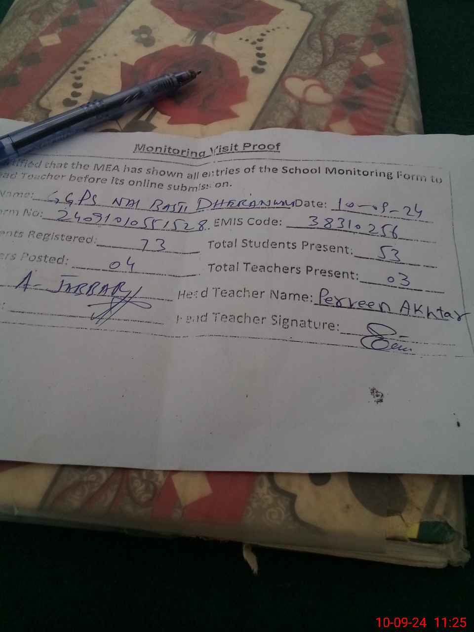 | Attendance Register | Head Teacher | MEA with School | Visit Proof |